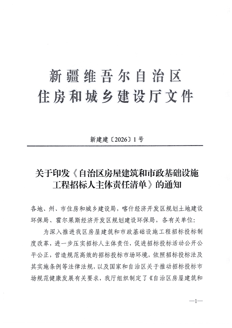关于印发《自治区房屋建筑和市政基础设施工程招标人主体责任清单》的通知
